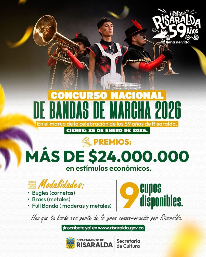 👉 Inscríbete y haz que tu banda represente a tu región en esta fiesta que une a Colombia a través de la música. https://www.risaralda.gov.co/documentos/151306/cultura-2026/